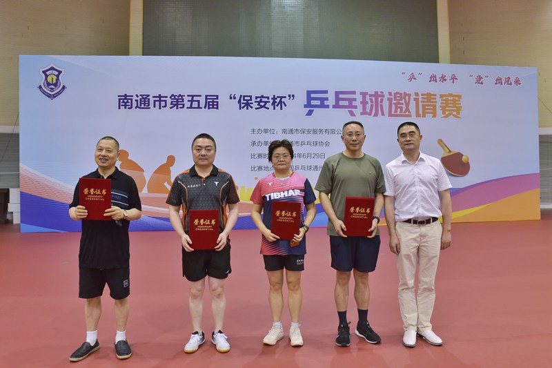 6月29日,南通市第五屆“保安杯”乒乓球邀請賽在開沙島中國乒乓球通州訓練基地成功舉辦。賽事由南通市保安服務有限公司主辦,南通市乒協(xié)承辦。市國資委副主任、二級調(diào)研員于海華,市乒協(xié)主席侯軍,城建集團副總經(jīng)理董新平,保安公司董事長方俊,市乒協(xié)副主席、秘書長張進出席開幕式。